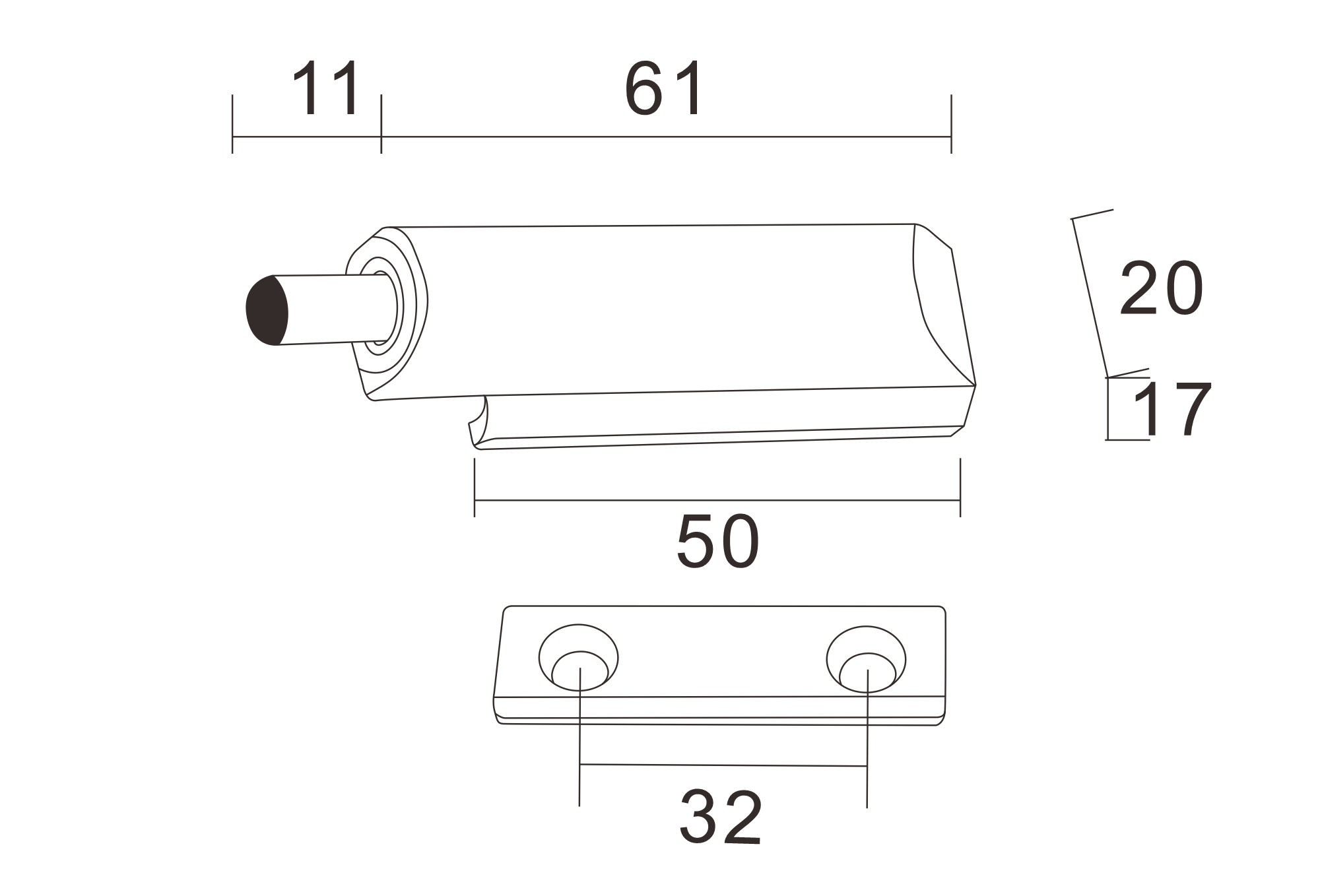 产品描述:本款反弹器采用高强度不锈钢弹簧与液压阻尼系统,实现柜门无拉手轻触即开。闭合时自动缓冲吸合,避免碰撞噪音。内部精密齿轮结构确保长期使用不卡顿,广泛适用于橱柜、衣柜、抽屉等家具场景。