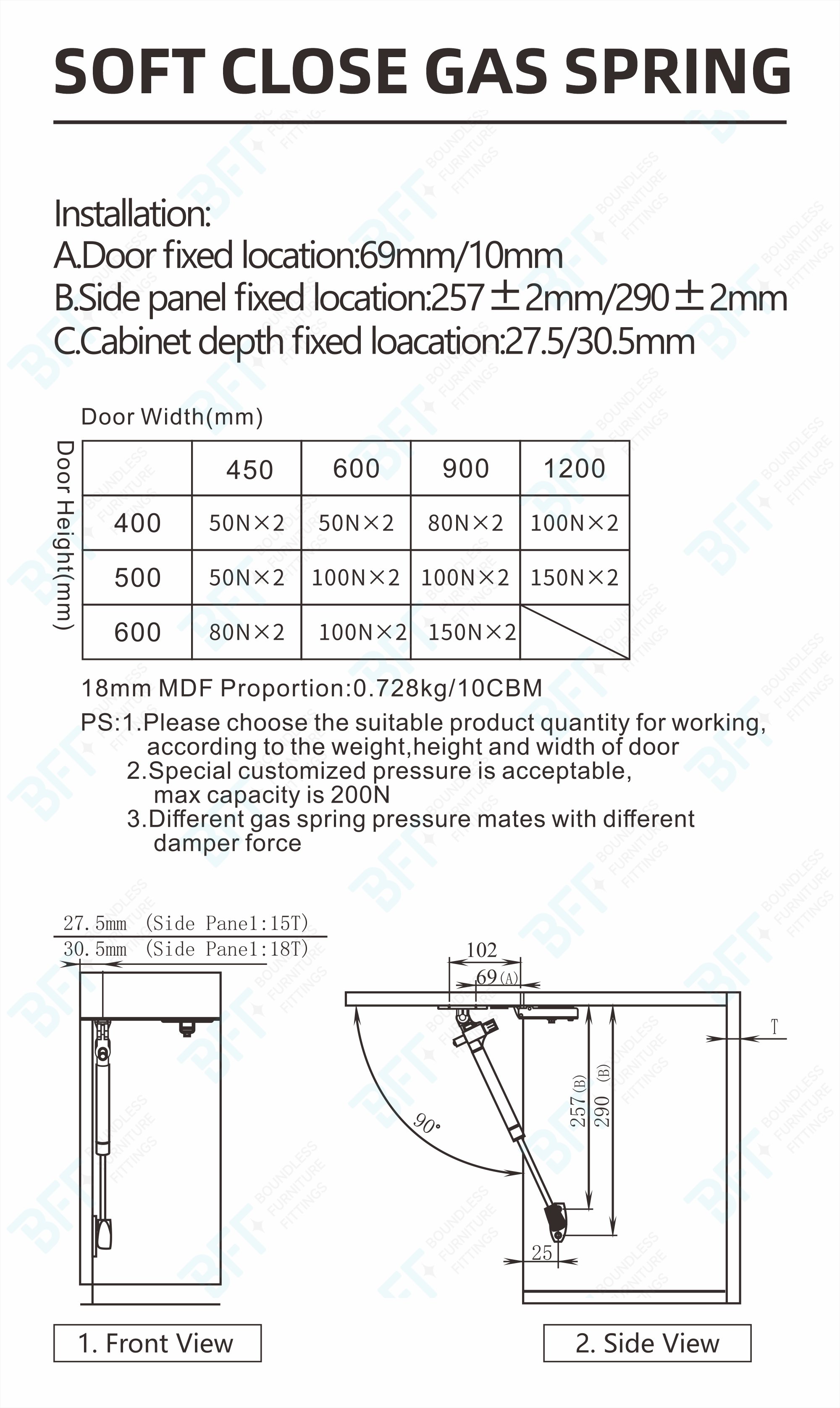 -Gas spring is a hydraulic/pneumatic device that is filled with high-pressure nitrogen gas inside, and achieves buffering, support of the cabinet door through the movement of the piston rod