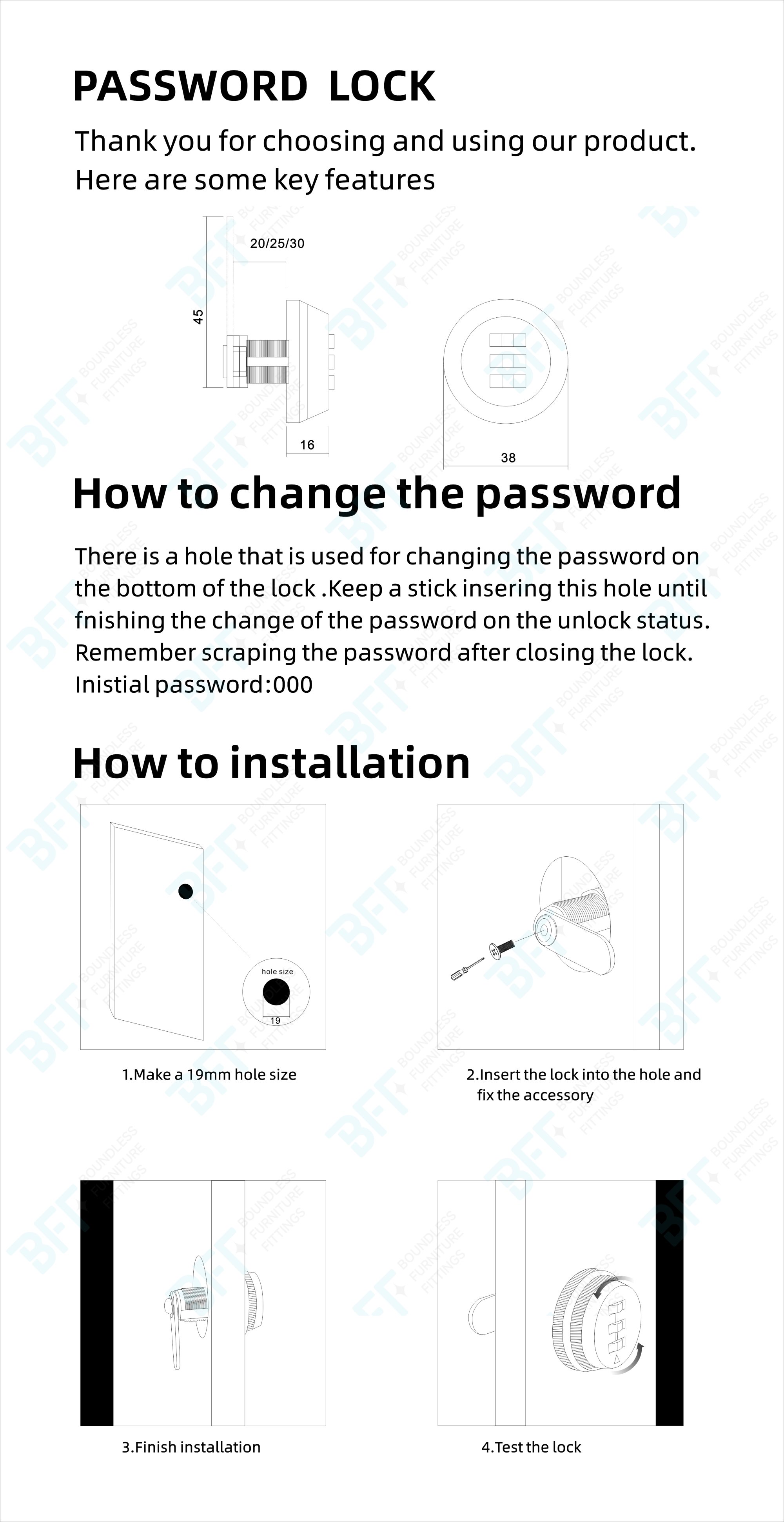 5.Suitable for wooden or steel cabinets.this code lock is Ideal for tool box, cabinets, drawers, mail box, cupboard,school lockers.