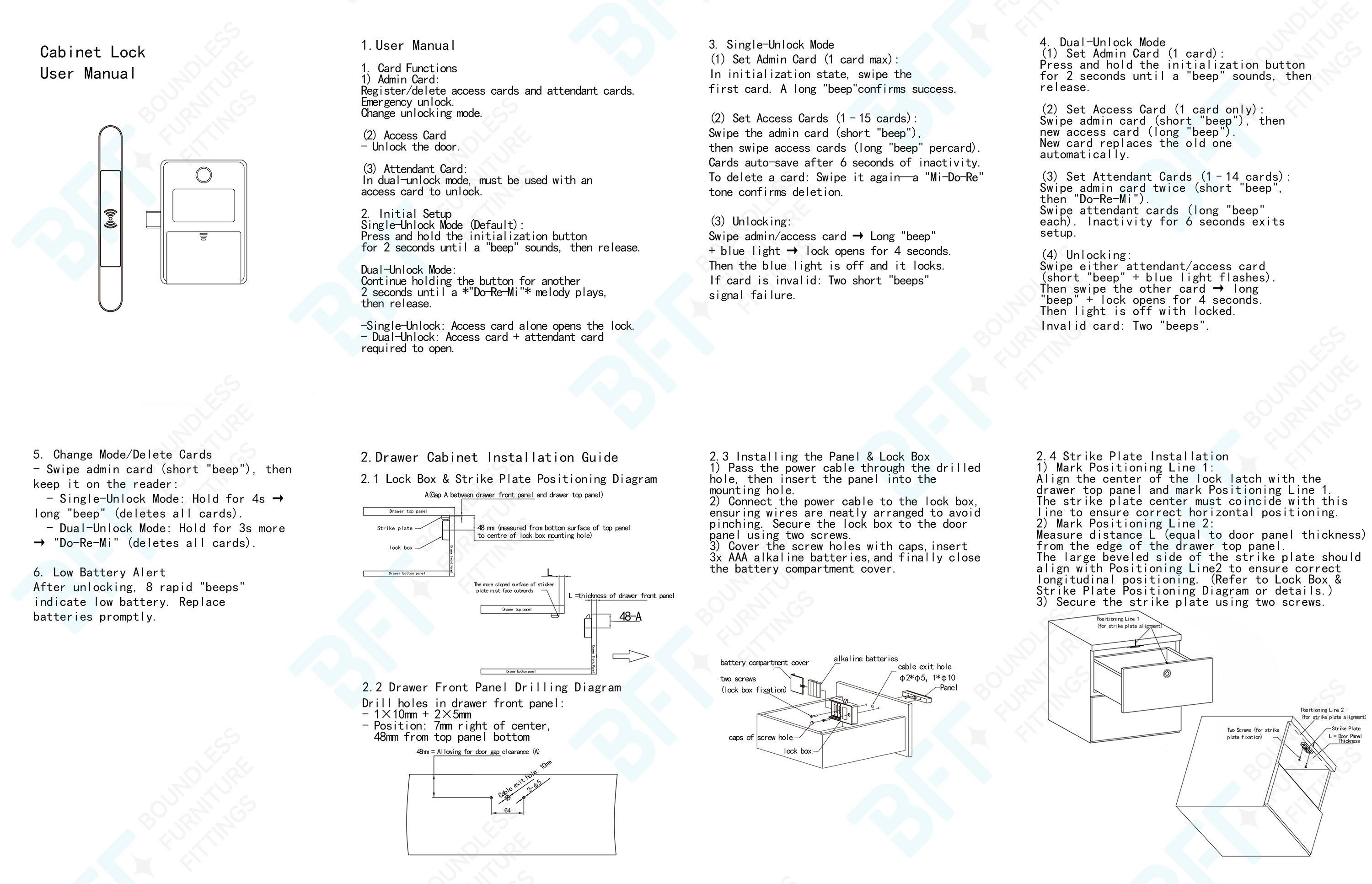 1. Unlocking method:Admin card, Access card, Attendant card