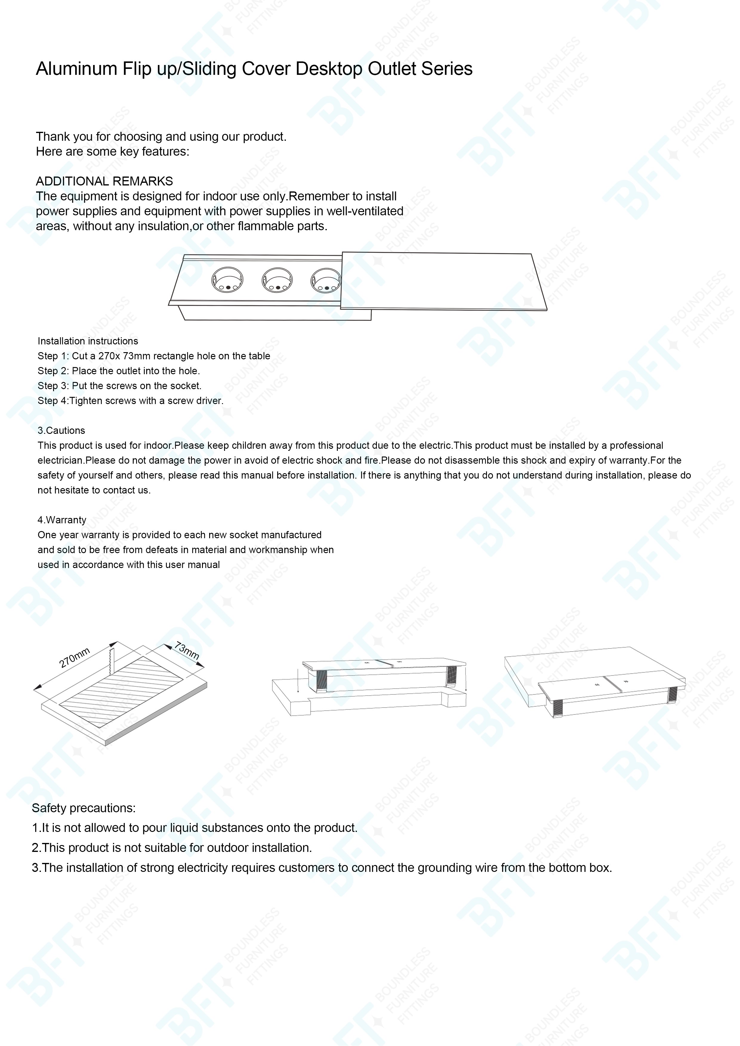 Dimensions of the mounting hole 270mm*73mm