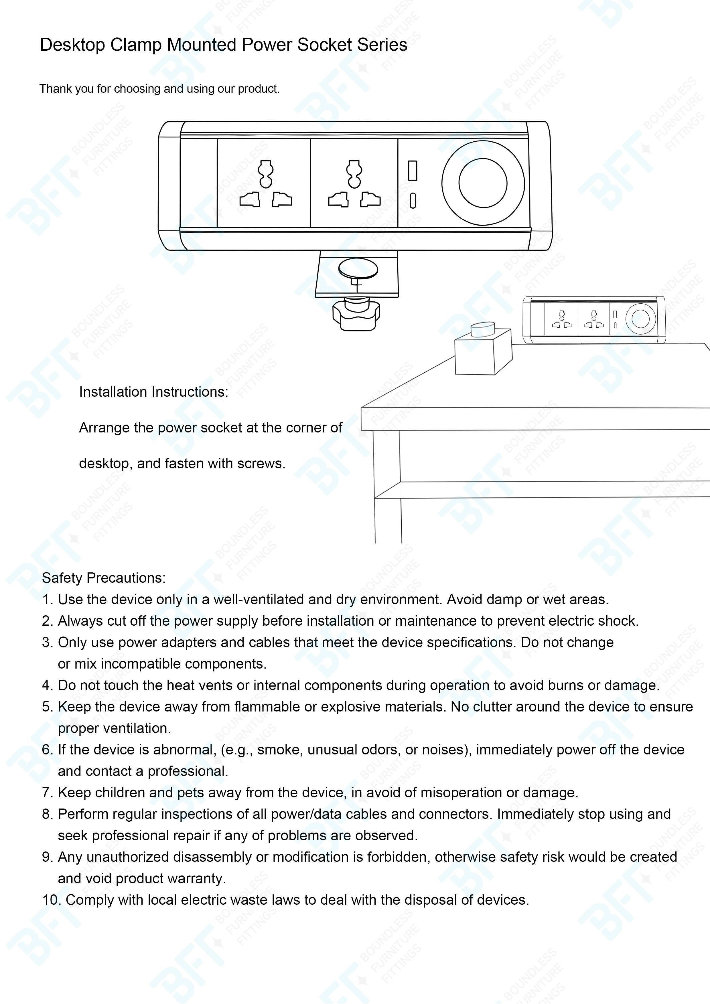 Clamp-Mounted Countertop Socket offers a practical and efficient power access solution, particularly suitable for interior environments where convenient electrical connectivity is essential