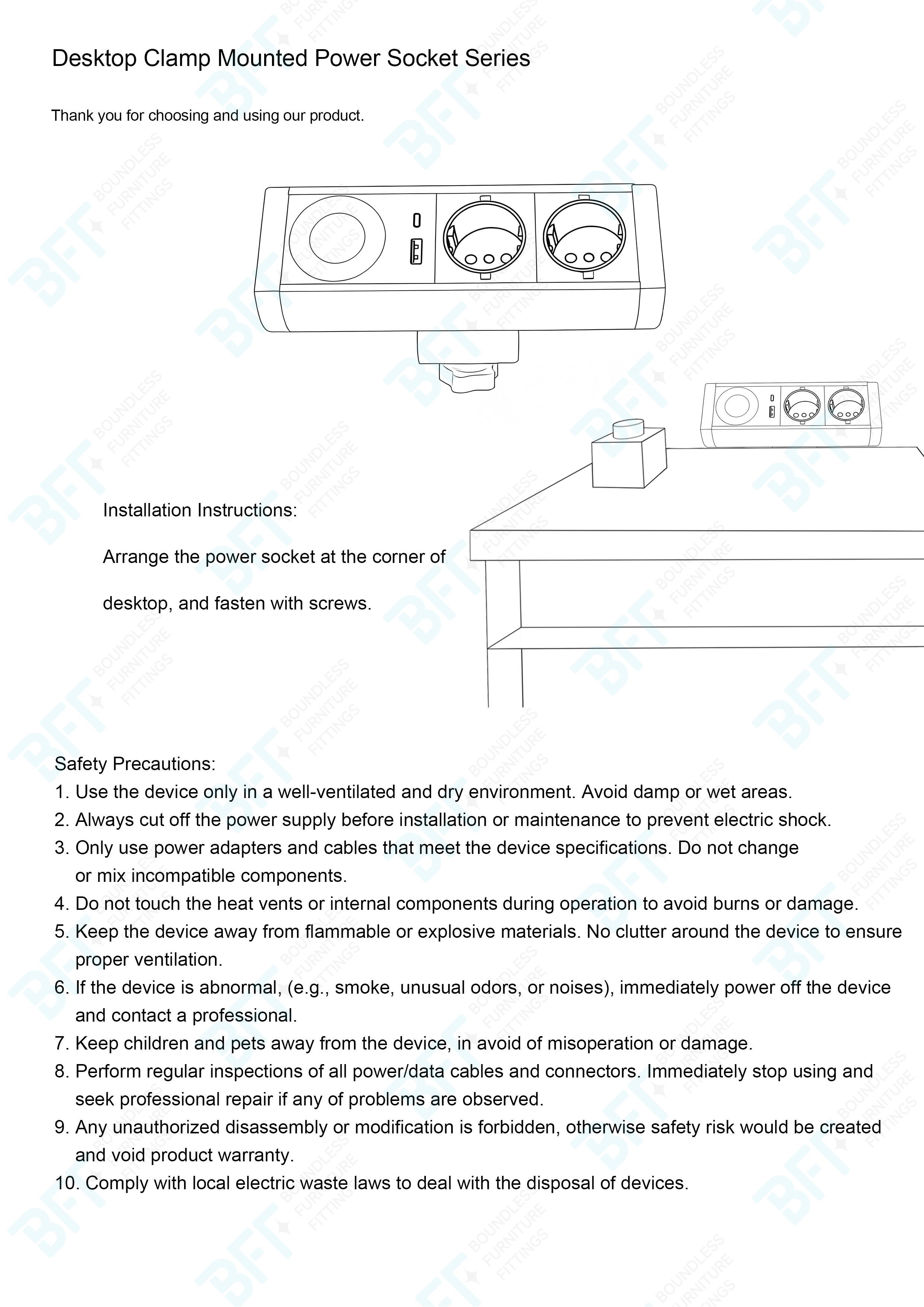 Clamp-Mounted Countertop Socket offers a practical and efficient power access solution, particularly suitable for interior environments where convenient electrical connectivity is essential