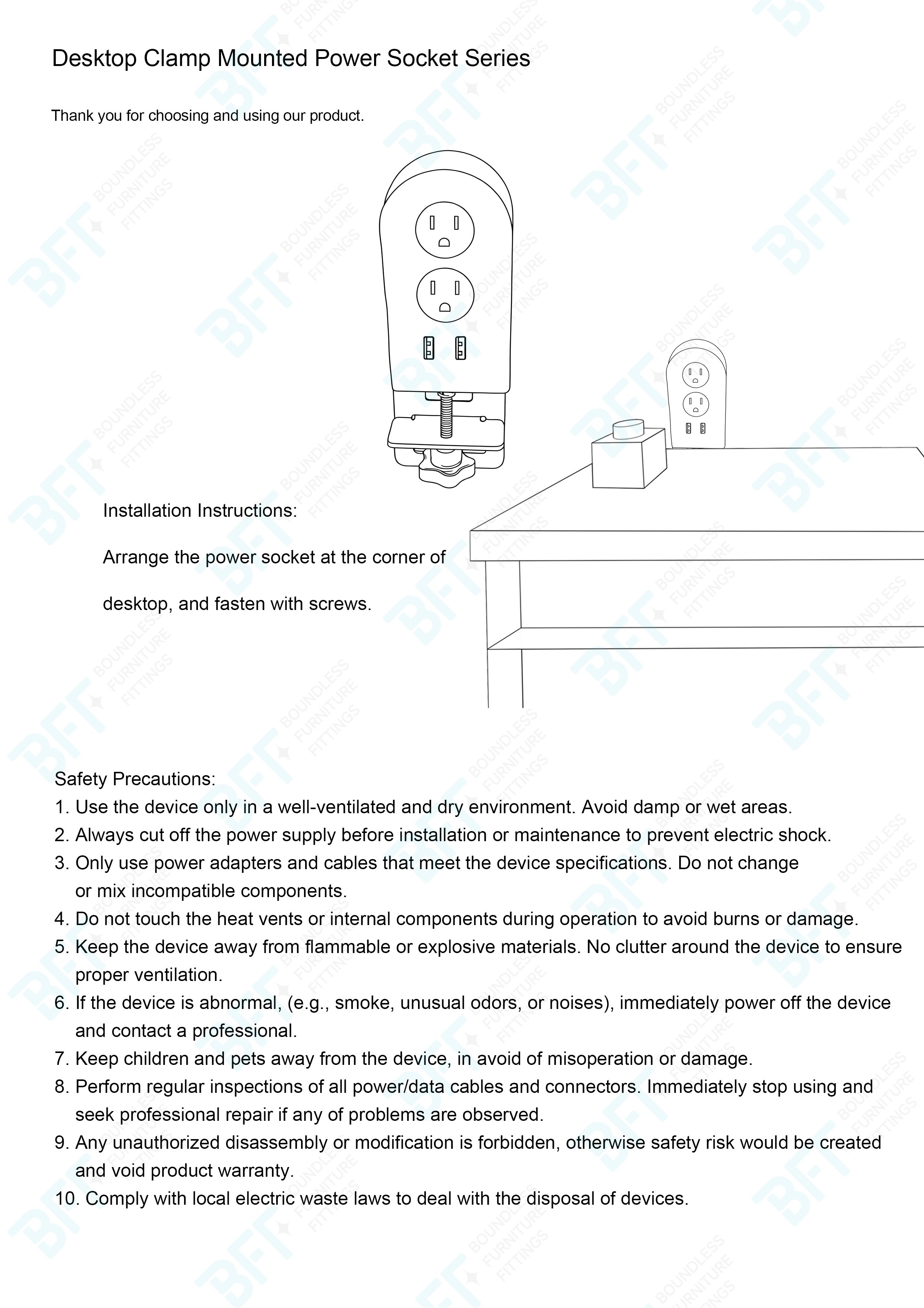 Clamp-Mounted Countertop Socket offers a practical and efficient power access solution, particularly suitable for interior environments where convenient electrical connectivity is essential
