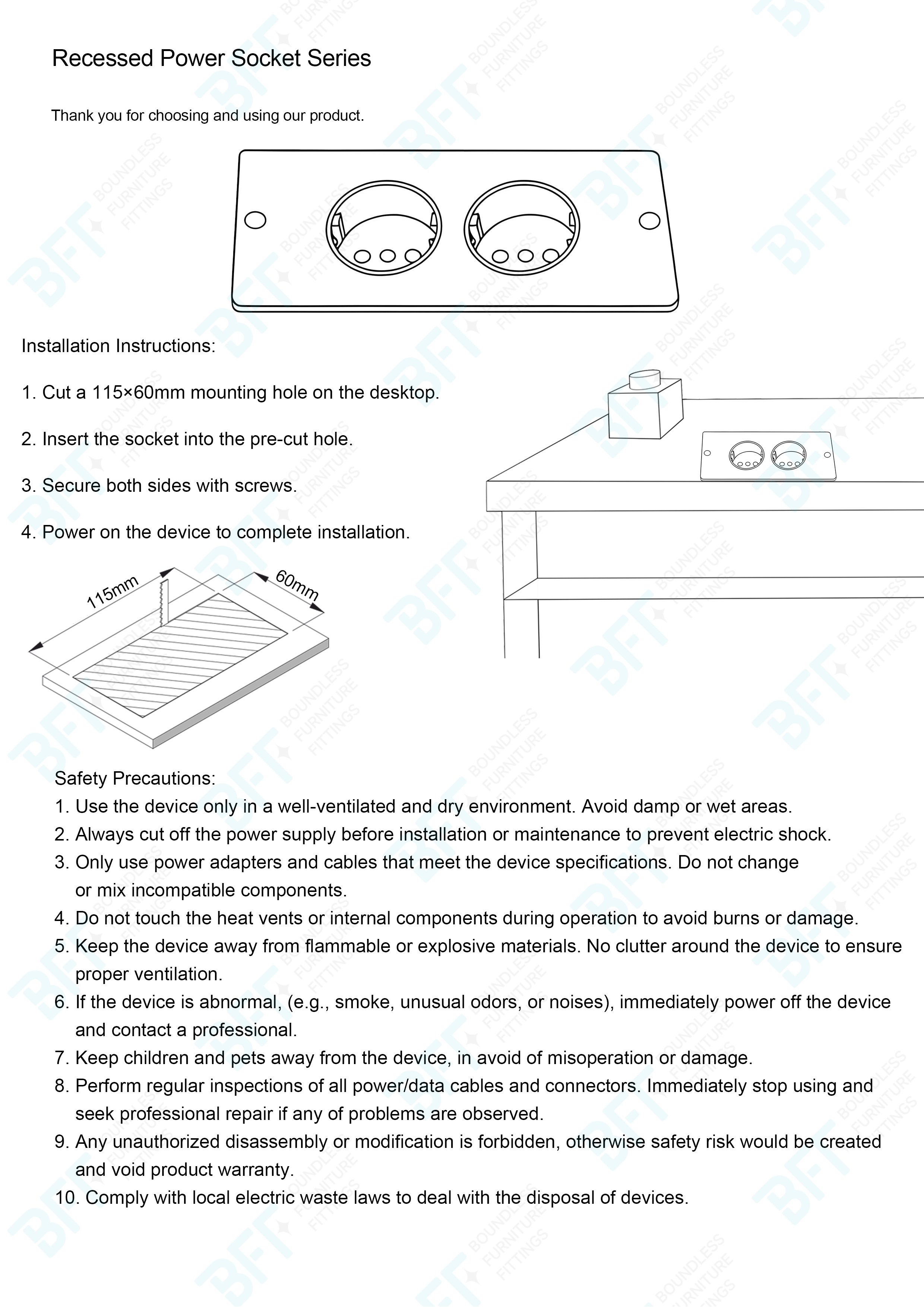 Recessed Power Socket offers a practical and efficient power access solution, particularly suitable for interior environments where convenient electrical connectivity is essential