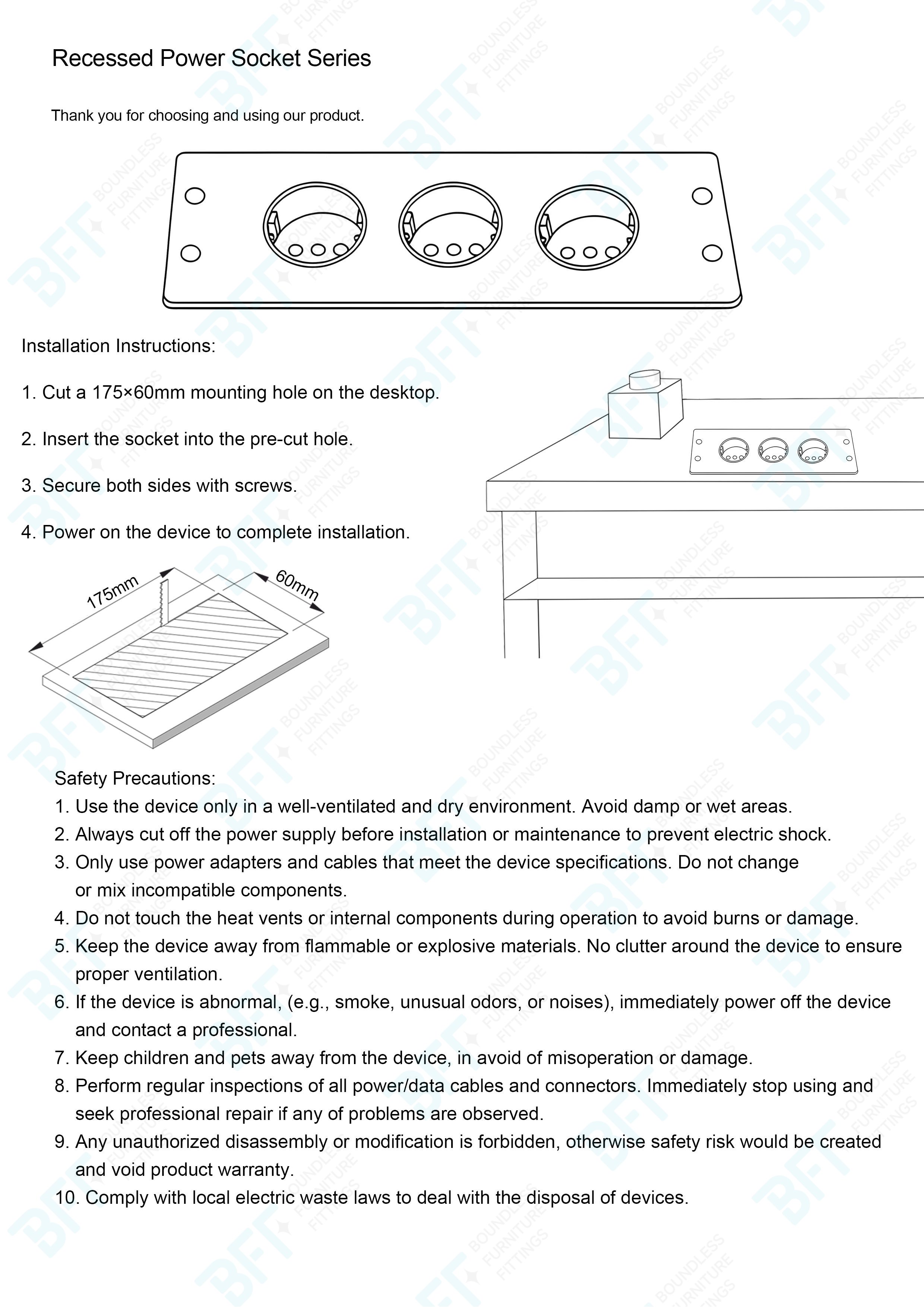 Recessed Power Socket offers a practical and efficient power access solution, particularly suitable for interior environments where convenient electrical connectivity is essential