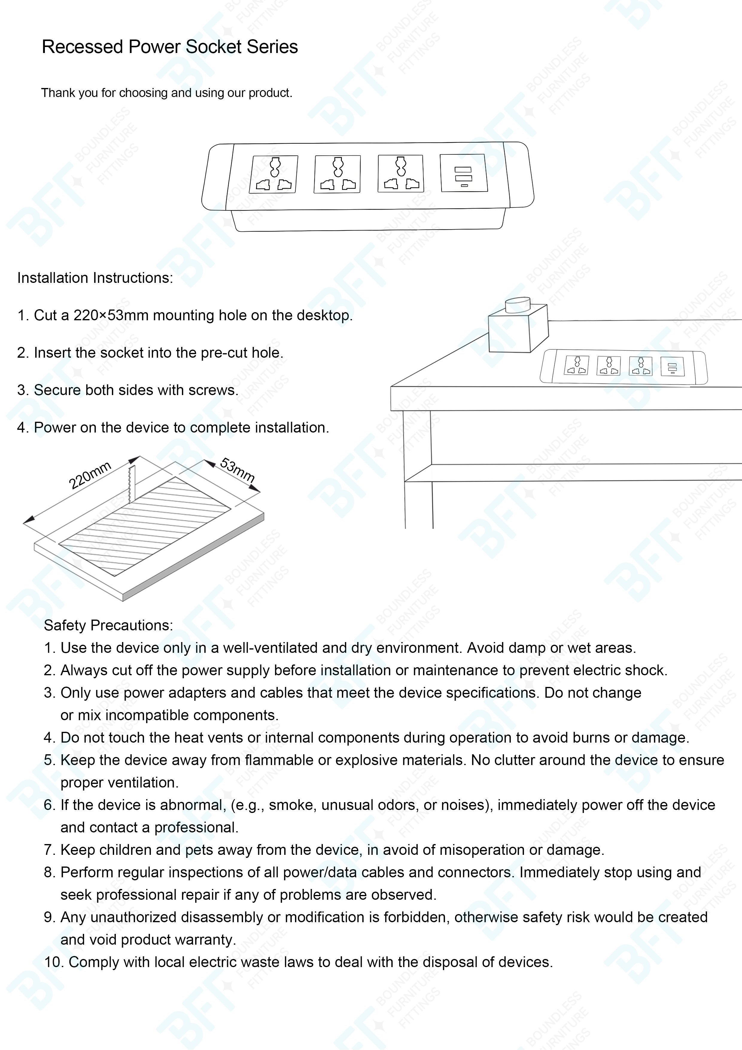 Recessed Power Socket offers a practical and efficient power access solution, particularly suitable for interior environments where convenient electrical connectivity is essential