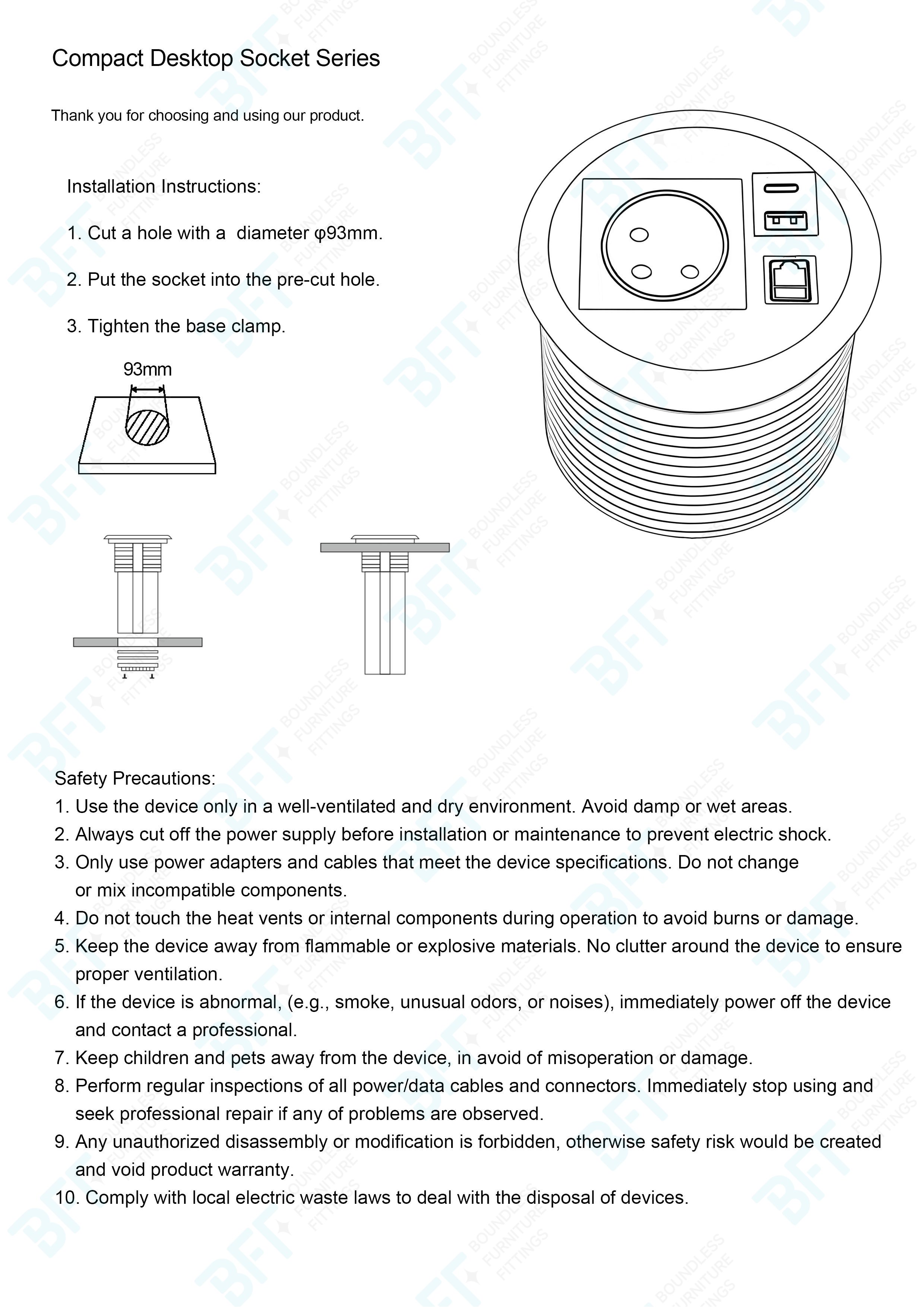 Built-in Desktop Round Socket offers a practical and efficient power access solution, particularly suitable for interior environments where convenient electrical connectivity is essential
