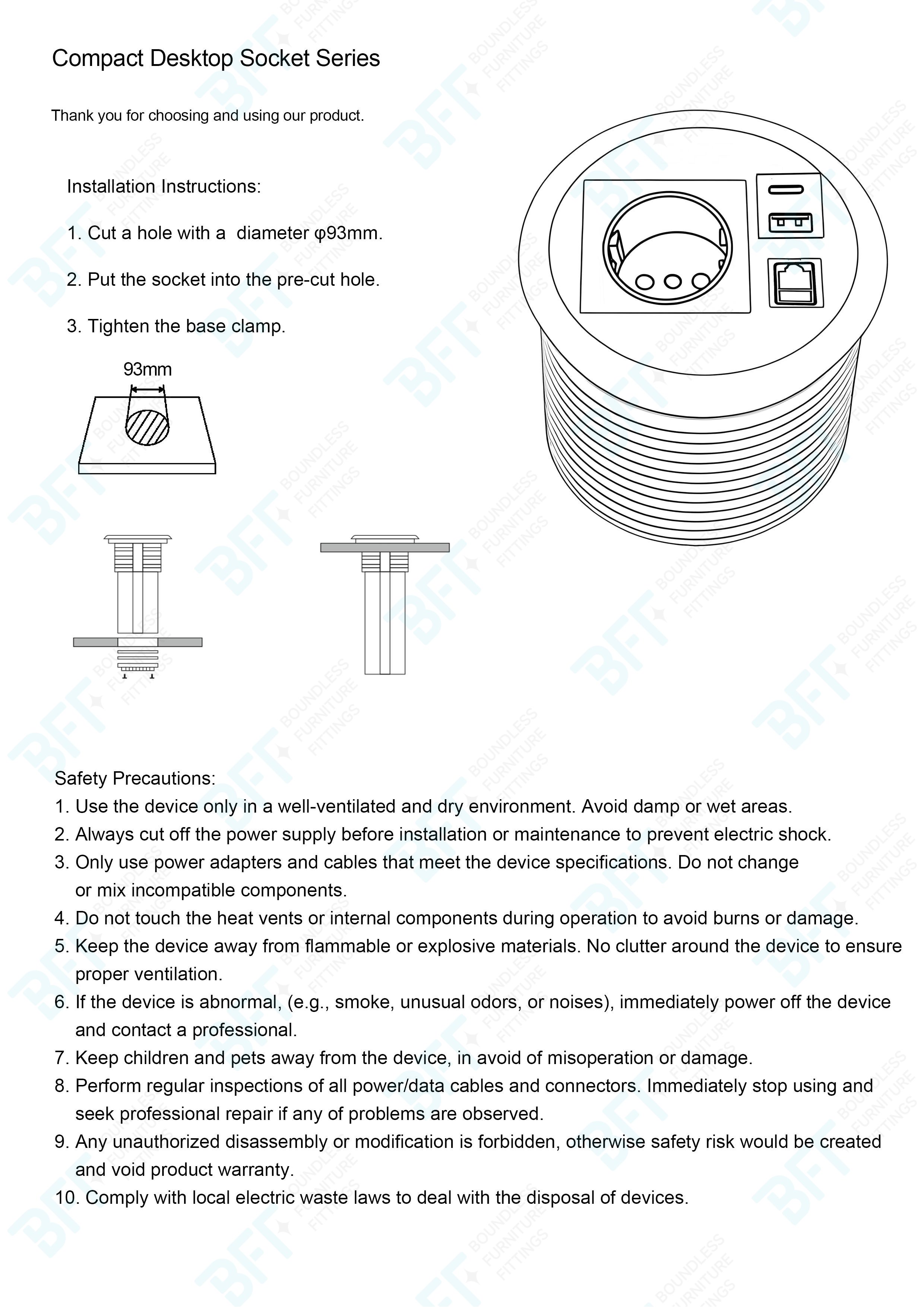 Built-in Desktop Round Socket offers a practical and efficient power access solution, particularly suitable for interior environments where convenient electrical connectivity is essential