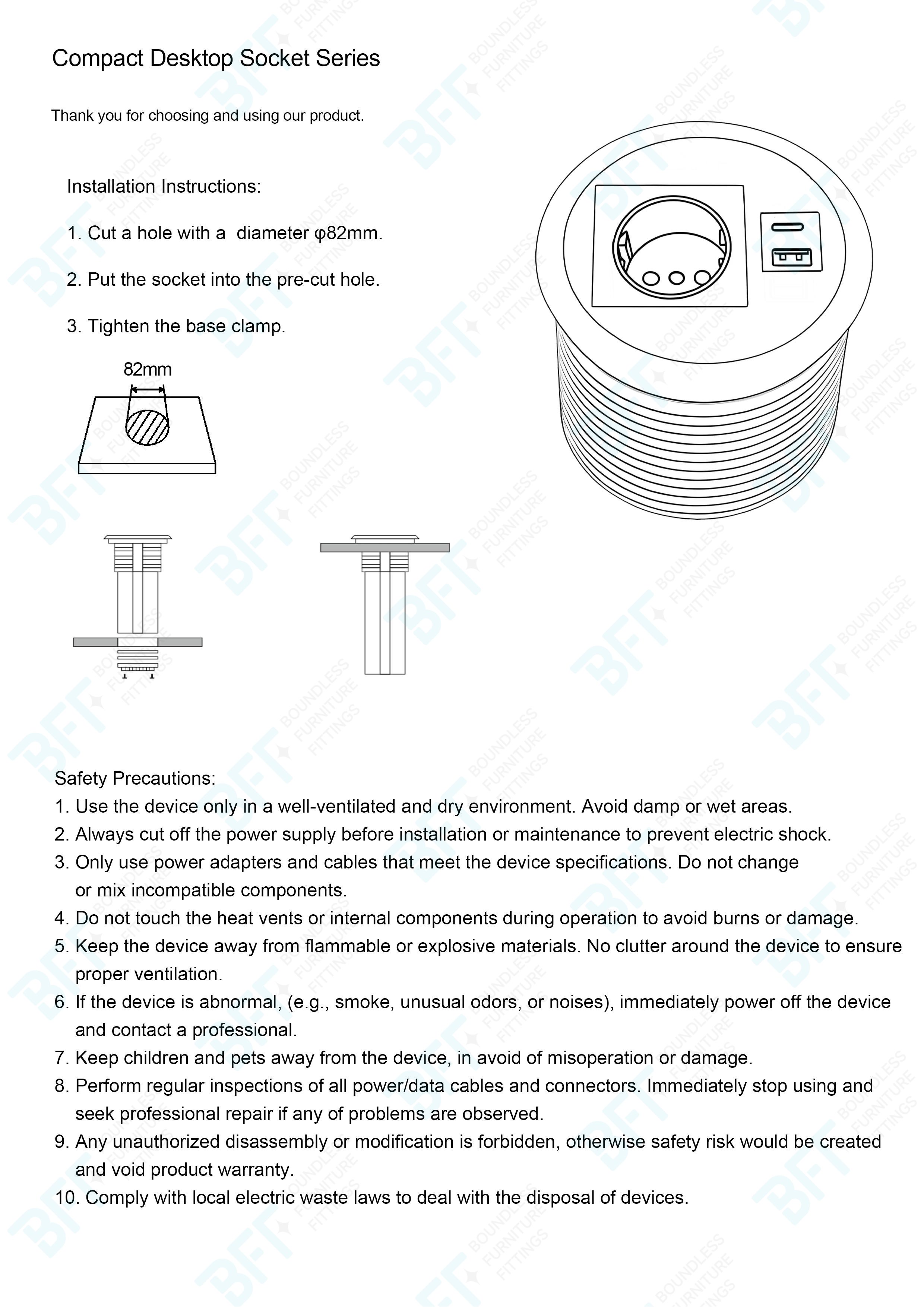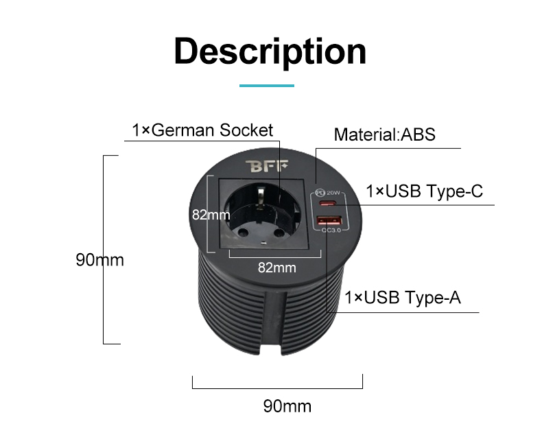 Built-in Desktop Round Socket offers a practical and efficient power access solution, particularly suitable for interior environments where convenient electrical connectivity is essential