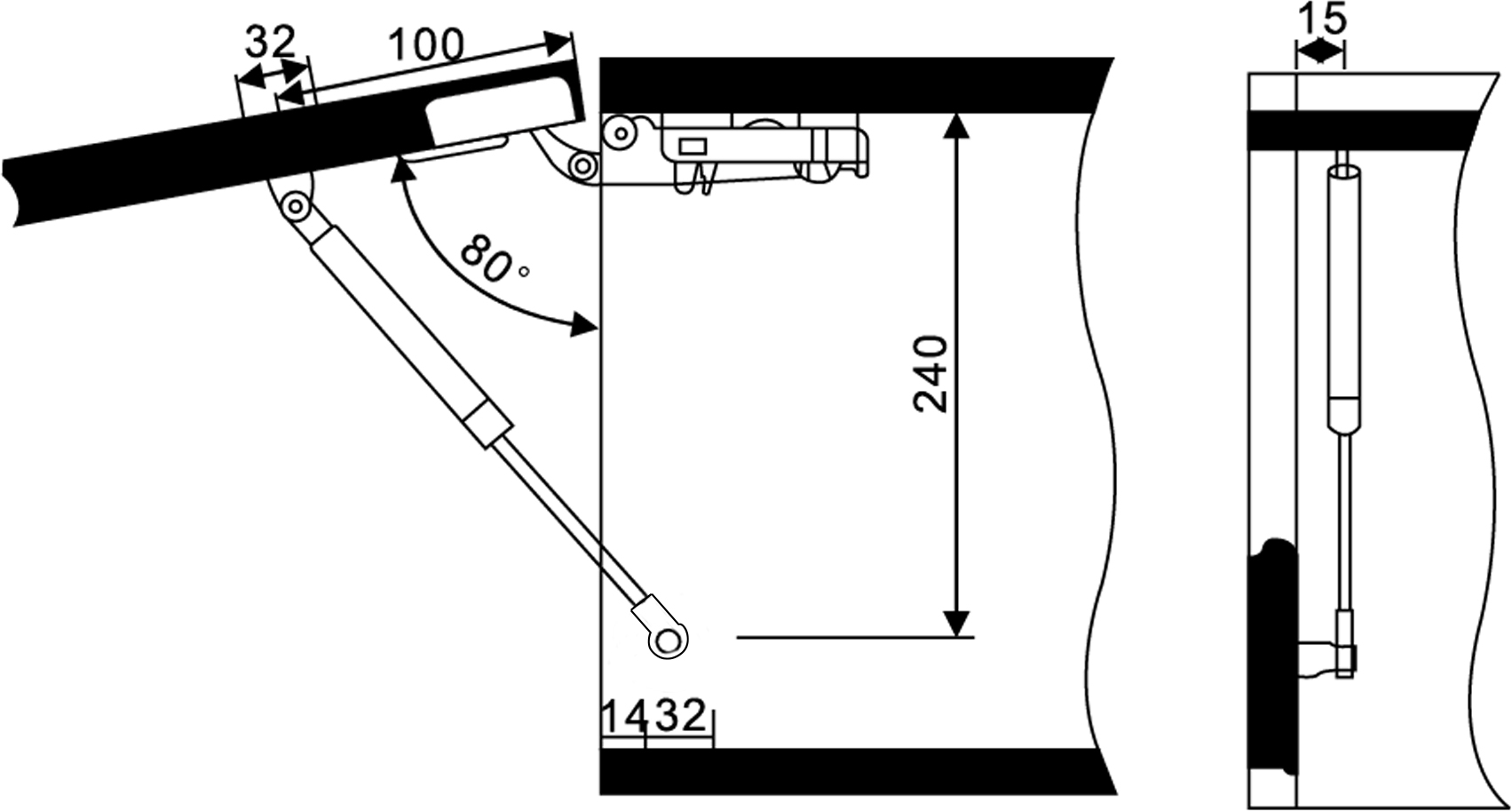 -Gas spring is a hydraulic/pneumatic device that is filled with high-pressure nitrogen gas inside, and achieves buffering, support of the cabinet door through the movement of the piston rod