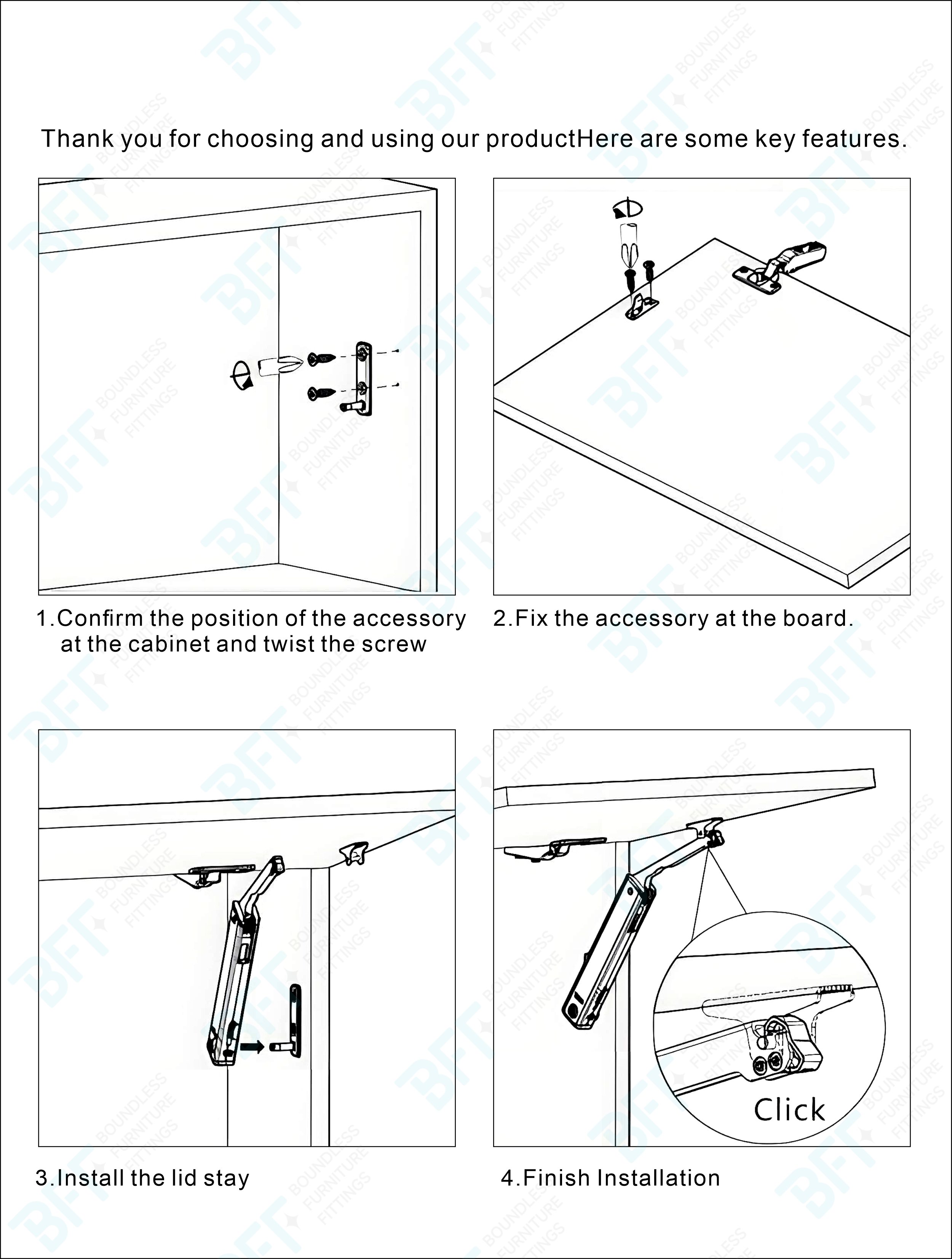 -The Lid Stay is an ideal solution for cabinets. Its small size ensures it won’t take up valuable internal space, maximizing storage potential and maintaining a clean, organized look.