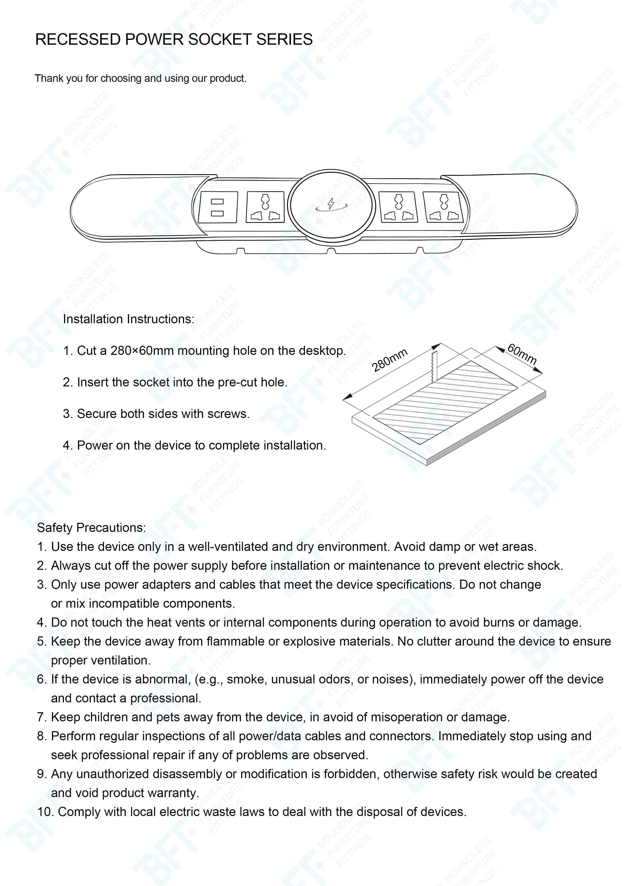 Recessed Power Socket with Sliding cover, It offers a practical and efficient power access solution, particularly suitable for interior environments where convenient electrical connectivity is essential