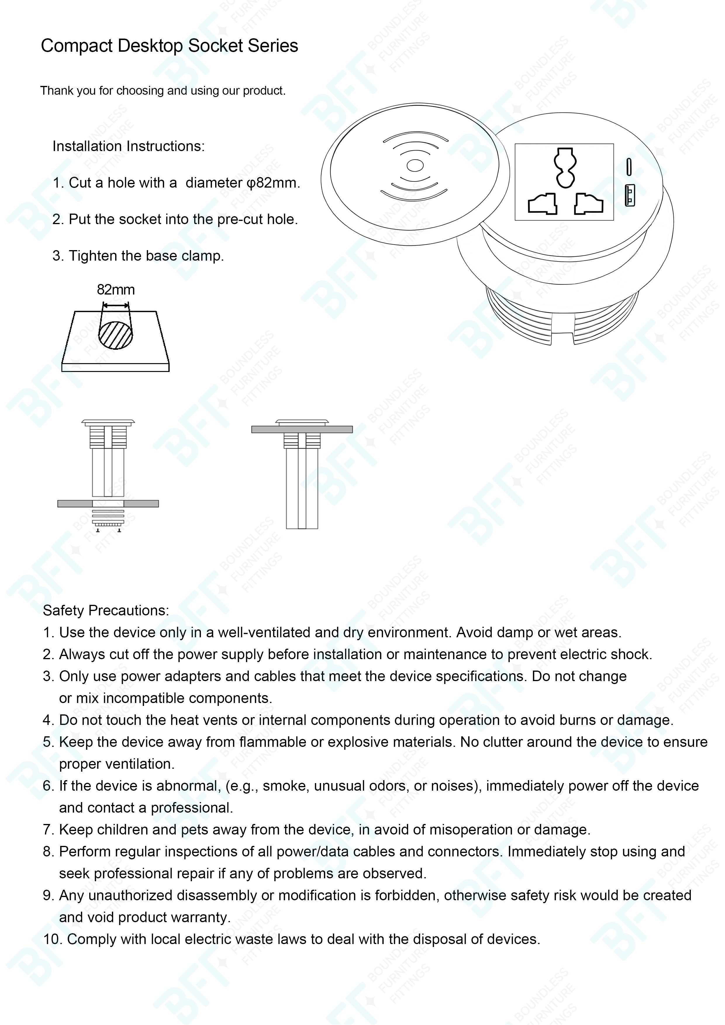 Built-in Desktop Round Socket offers a practical and efficient power access solution, particularly suitable for interior environments where convenient electrical connectivity is essential