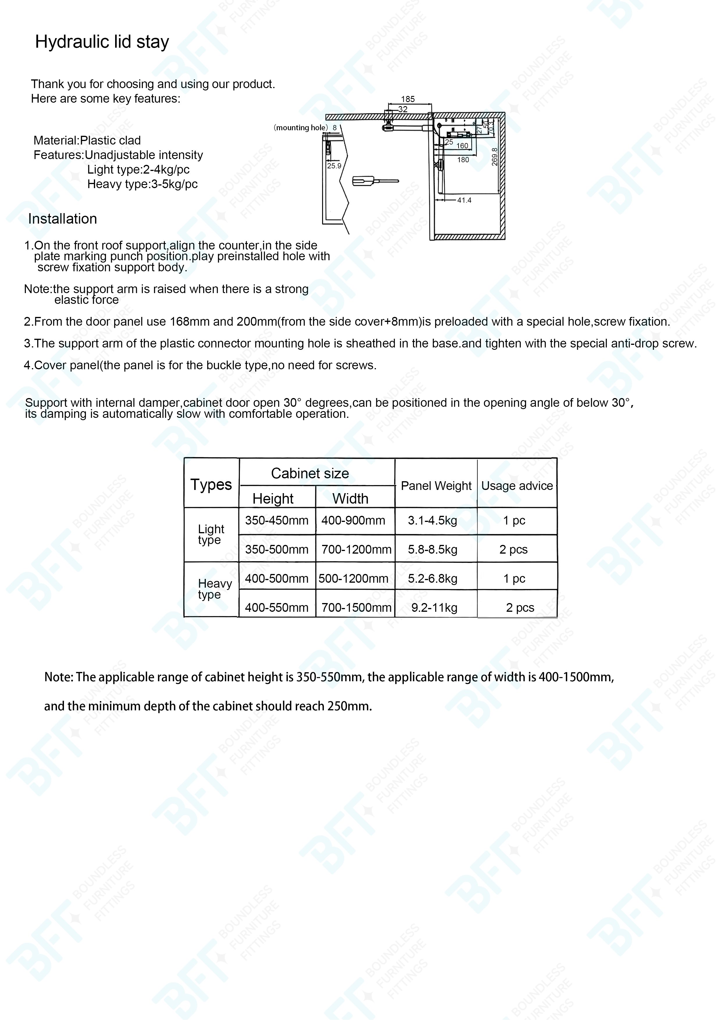 Lid stay is made of ABS and Aluminum material, widely use in all kinds of cabinet, such as toy box, kitchen cabinet, closet and so on