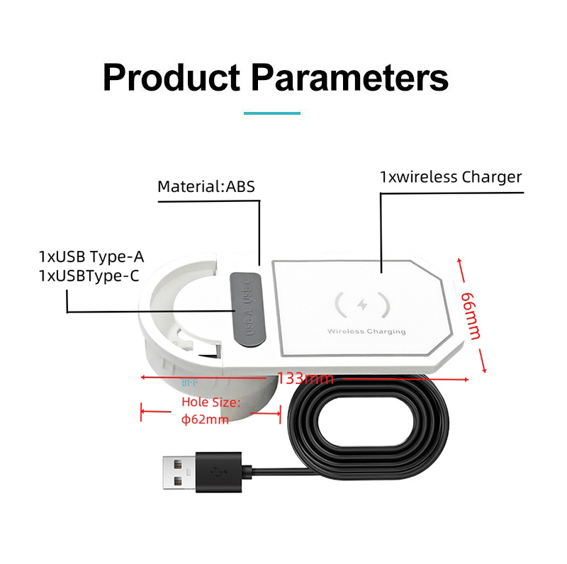 Embedded desktop wiring withφ60mm & USB and wireless charging socket offers a practical and efficient power access solution, particularly suitable for interior environments where convenient electrical connectivity is essential