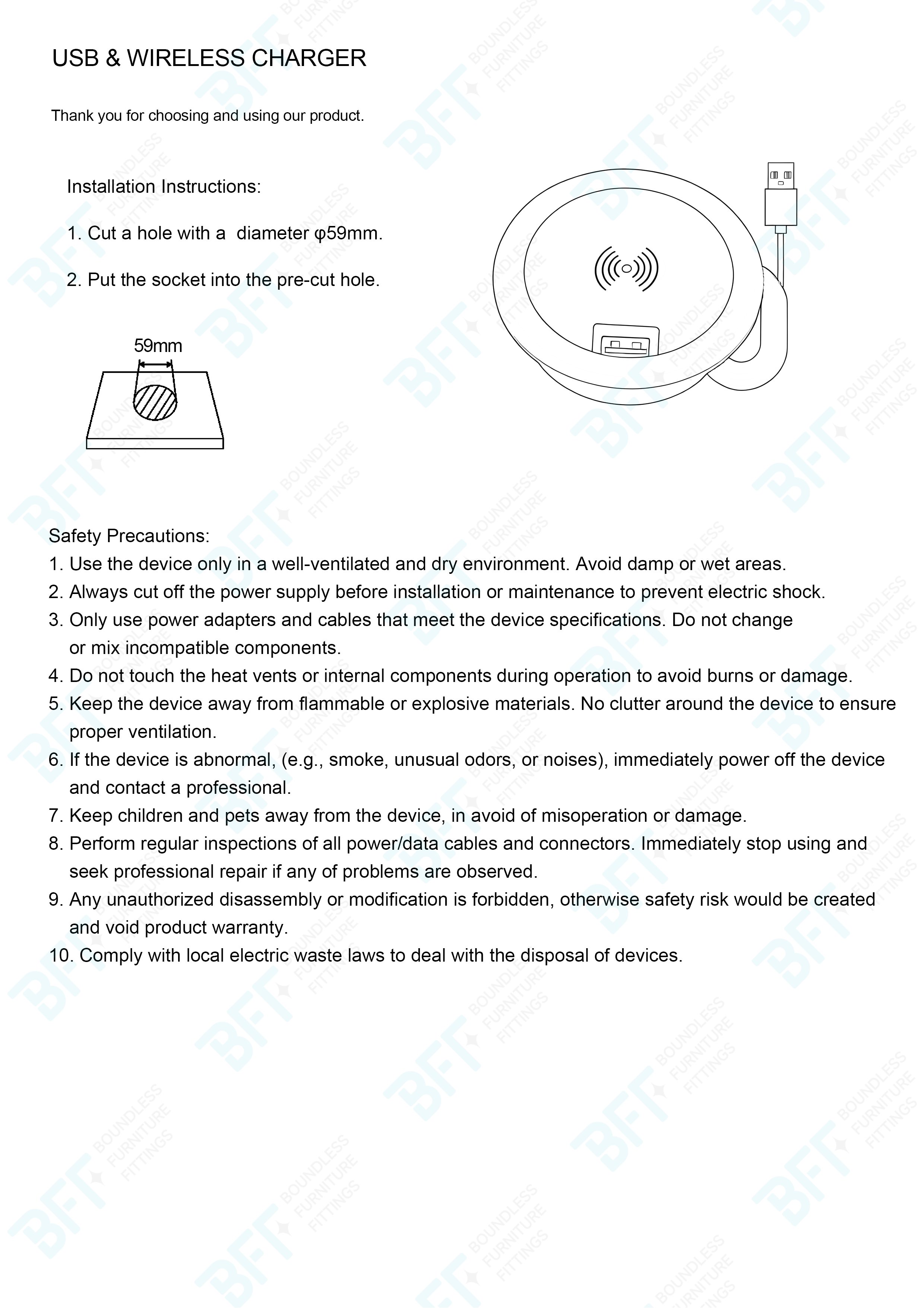 | Standard of the socket | 1USB Type A+Wireless charger |