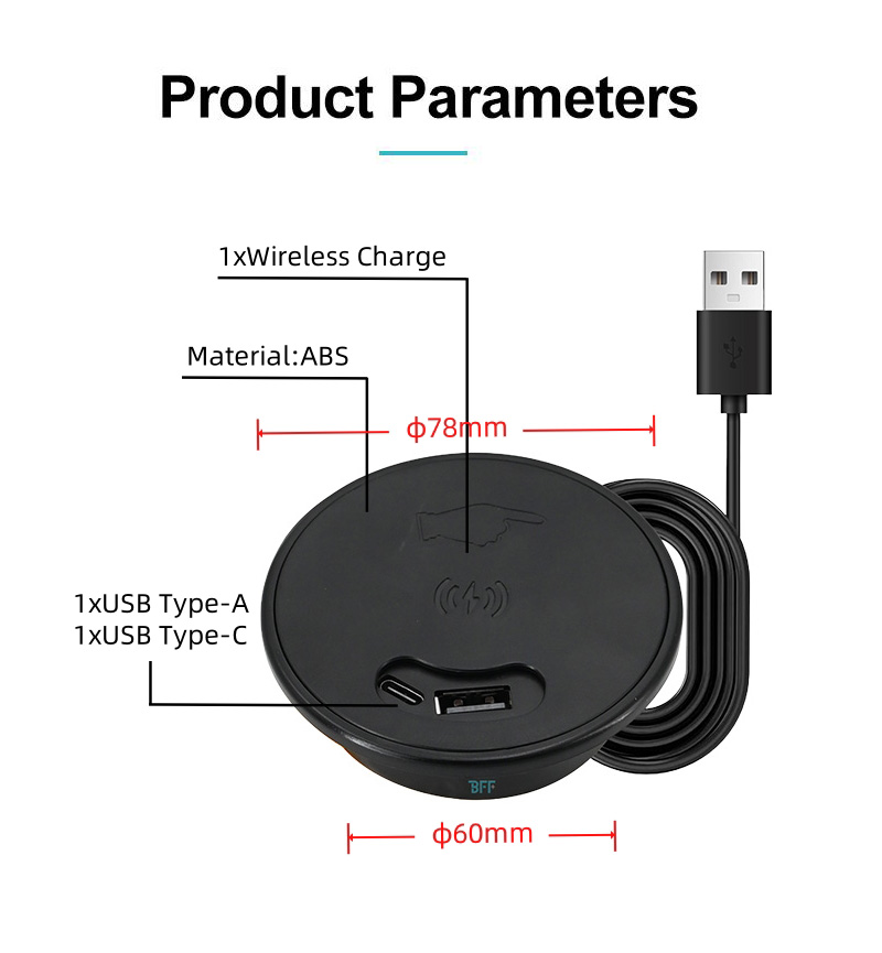 This socket is configured with 2 functional ports: 1USB Type A+1USB Type C+Wireless Charger