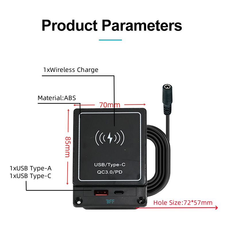 Standard of the socket | 1USB Type A+1USB Type C+1Wireless charger |