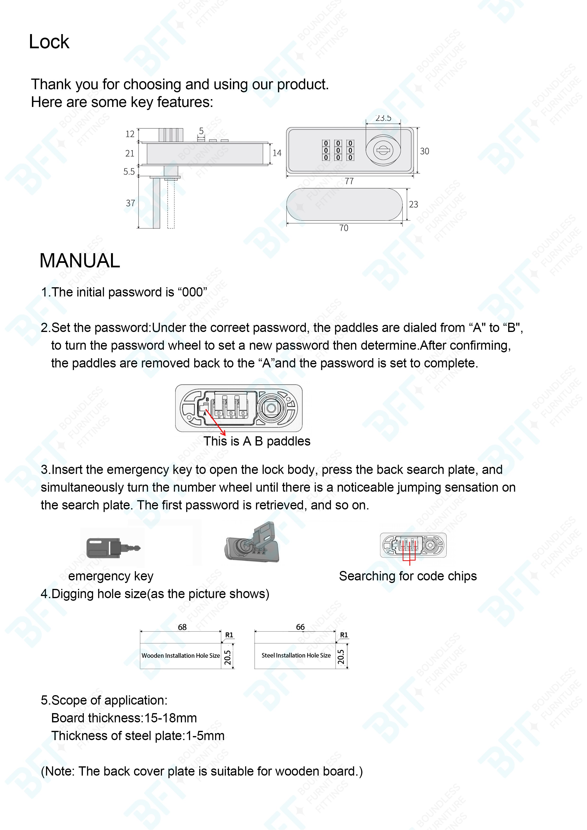 5.Suitable for wooden or steel cabinets.this code lock is Ideal for tool box, cabinets, drawers, mail box, cupboard,school lockers.