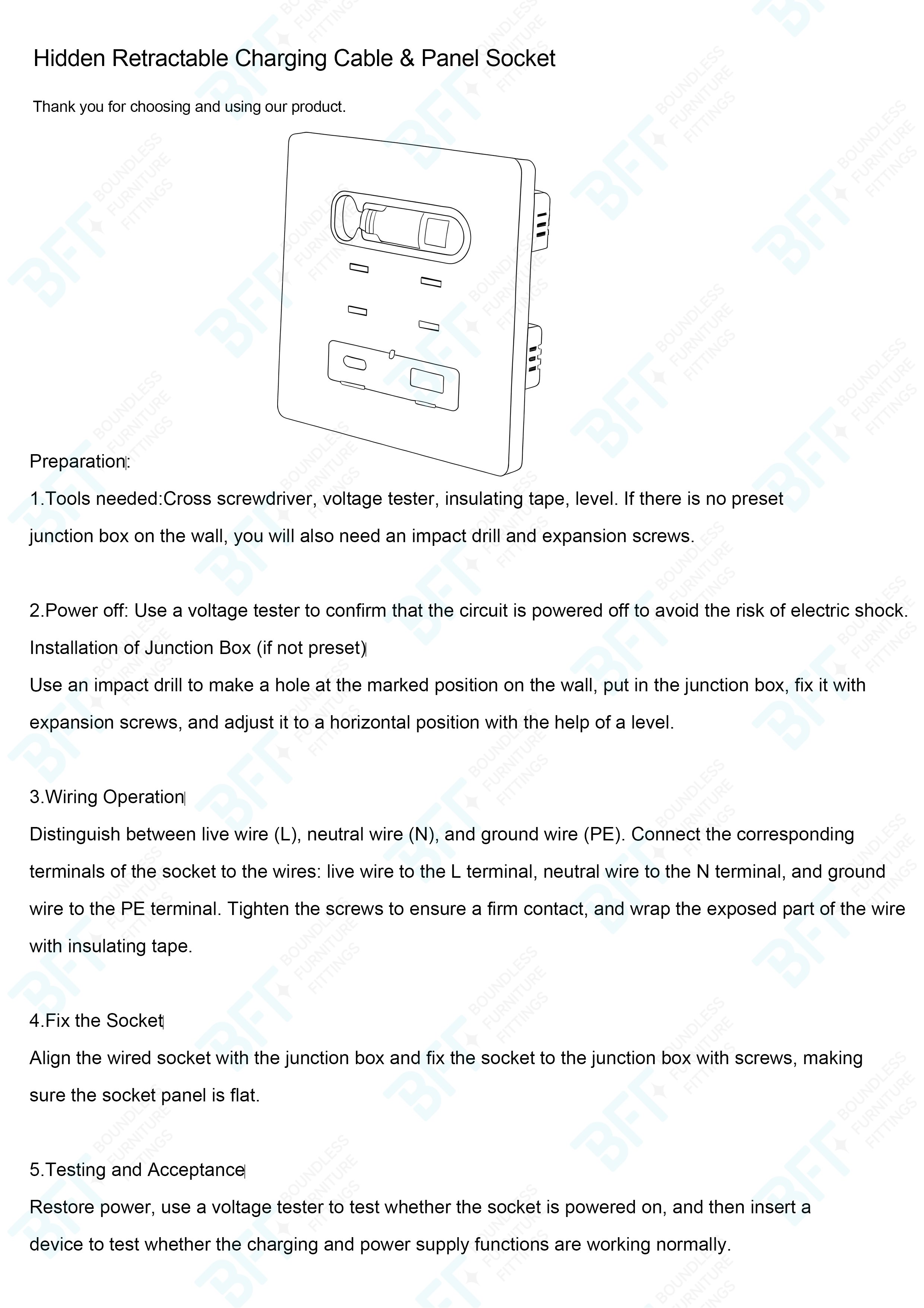 Concealed retractable charging cable & panel socket offers a practical and efficient power access solution, particularly suitable for interior environments where convenient electrical connectivity is essential