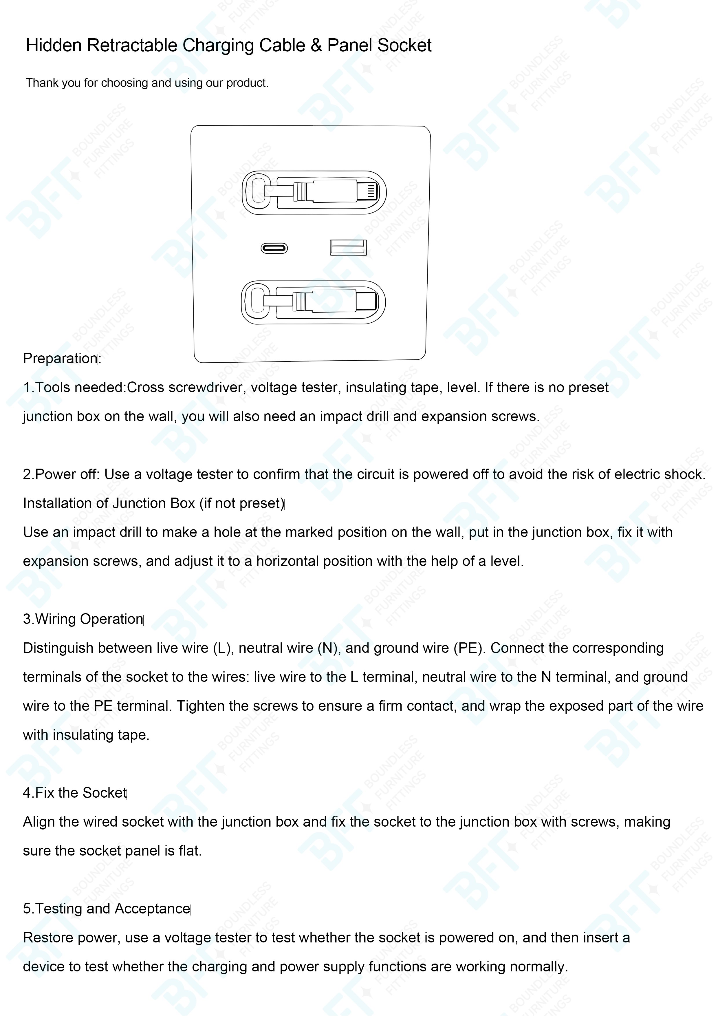 Concealed retractable charging cable & panel socket offers a practical and efficient power access solution, particularly suitable for interior environments where convenient electrical connectivity is essential