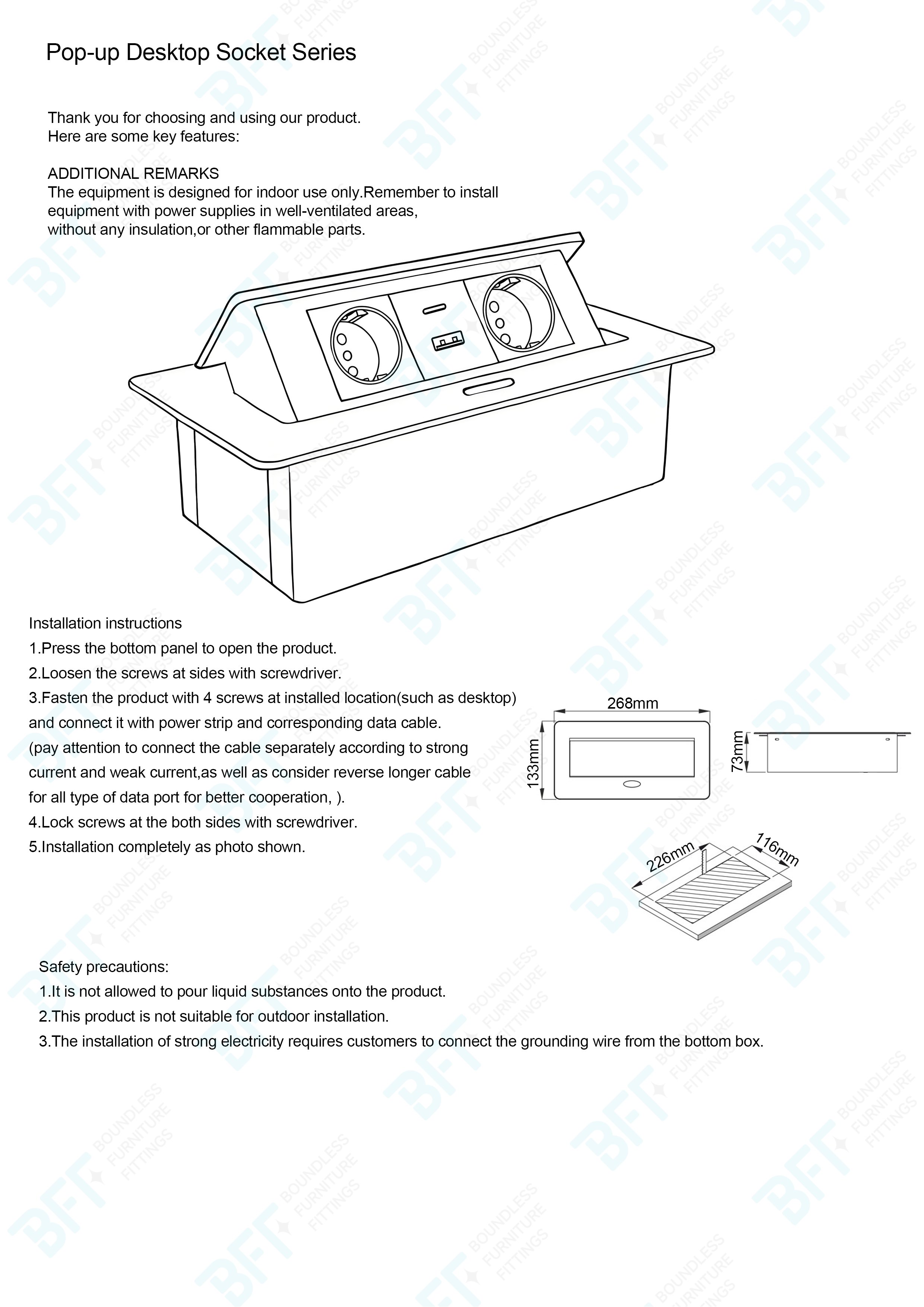 It can be built into a furniture or placed in a desk to provide quick and comfortable access to sockets