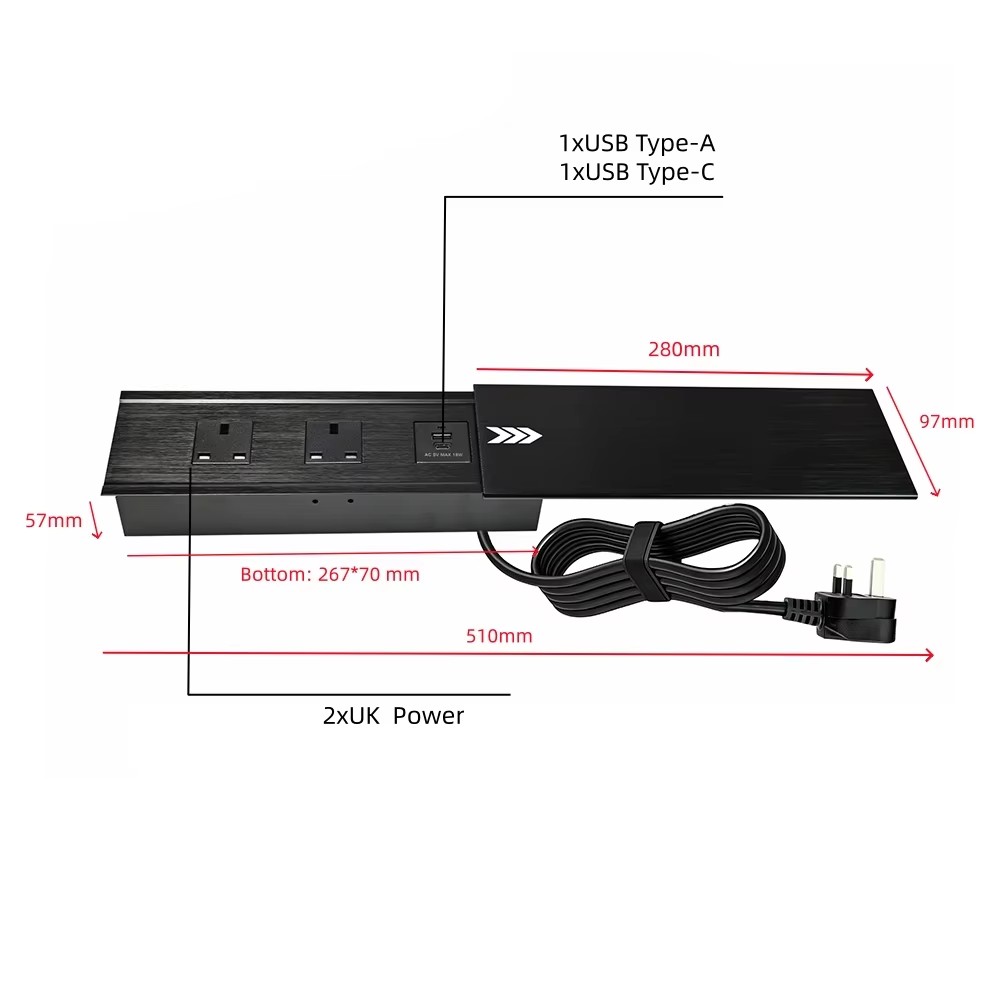 | Standard of the socket | 2XUK power+1 USB Type A+1 USB Type C |